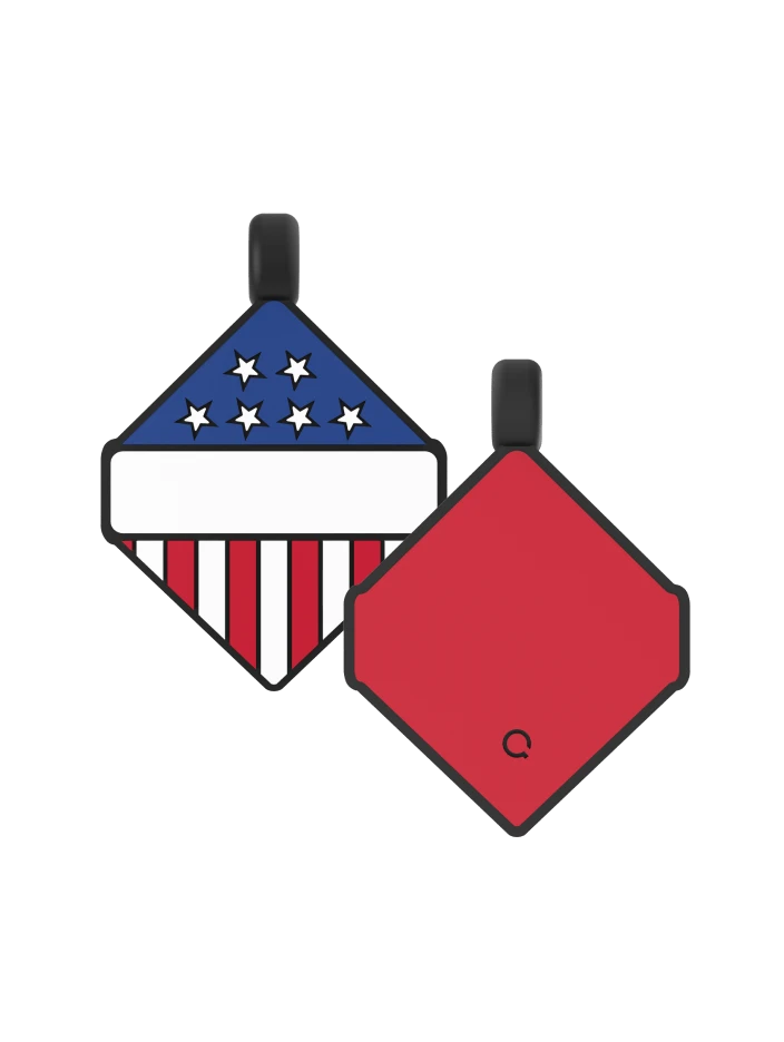 This jingle-free, adventure-ready Dog ID tag features an American flag design and can be customized on the front and back.