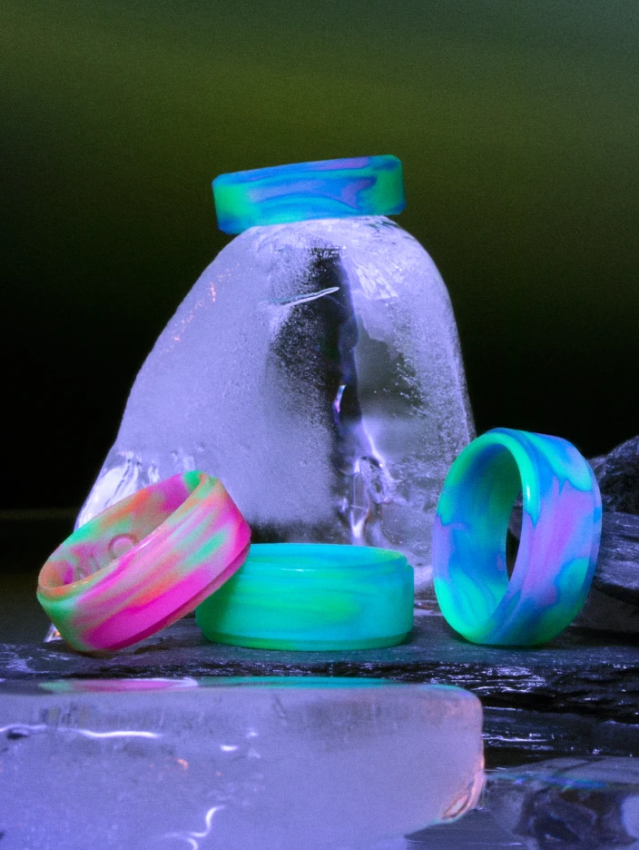 Inspired by the natural beauty of the Northern Lights, these rings capture the complexity and allure of the aurora borealis. Made with glow-in-the-dark material, so you can wow from day to night. Variances in color may occur, as each piece is unique.