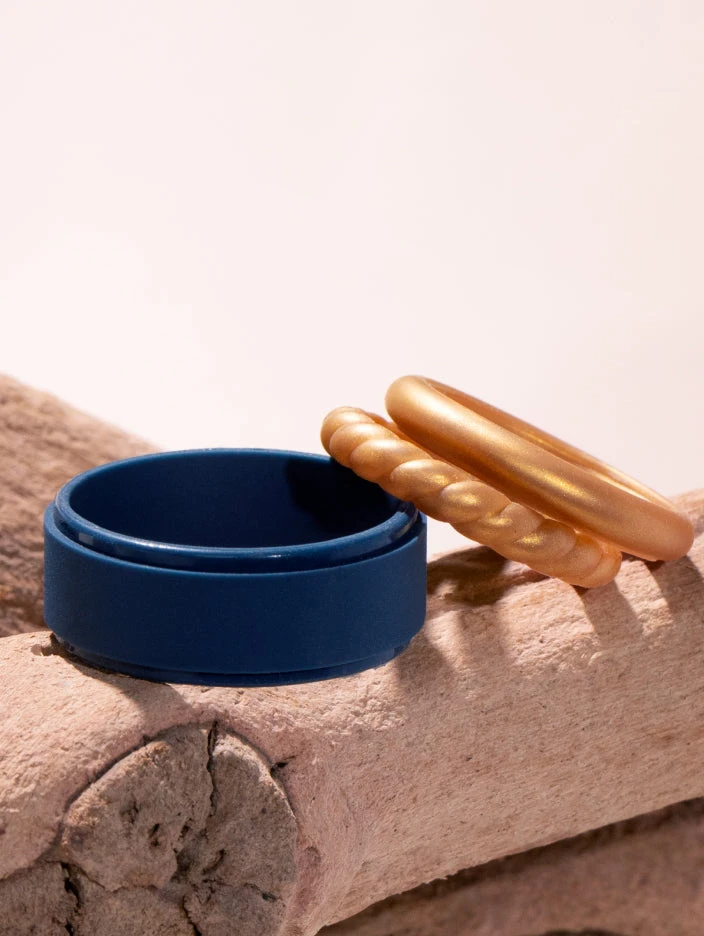 This limited edition collection was designed in collaboration with your favorite outdoorswoman: Eva Shockey! Inspired by Eva’s time exploring the Blue Ridge and Great Smoky Mountains, as well as the joy she finds in family life, this collection is for all adventures – indoors and out. This style features a precious metal look with the comfort of silicone.