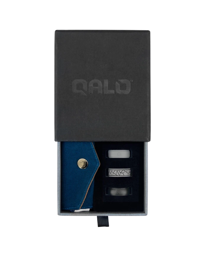 This QALO Gift Set includes the Men’s Classic Q2X Black ring, Men’s Strata Mosiac in Grey & Black ring, and the Men’s Step Edge Charcoal ring. These timeless styles are meant for those that love the classic look of a traditional ring but want the comfort and durability of QALO.