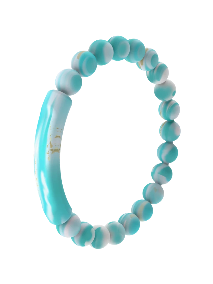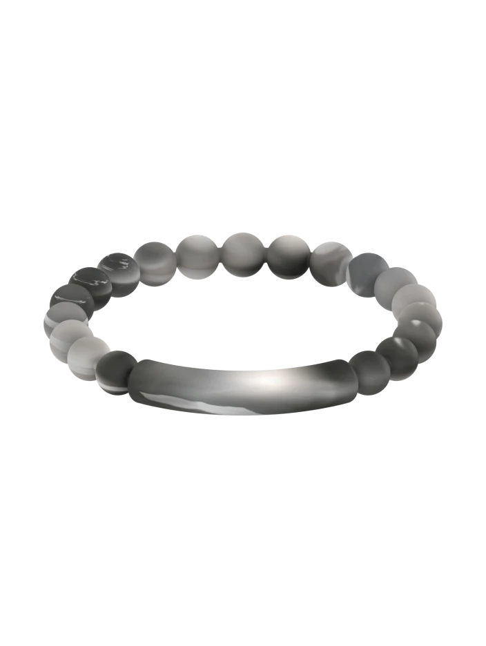 Part of our Natural Stone Functional Jewelry Collection, the Tranquil Bracelet is crafted from tough, yet ultra-comfortable silicone that captures the look of stone forged by the earth. This beaded silhouette has a comfortably snug fit, and is water resistant, durable, and easy to clean.