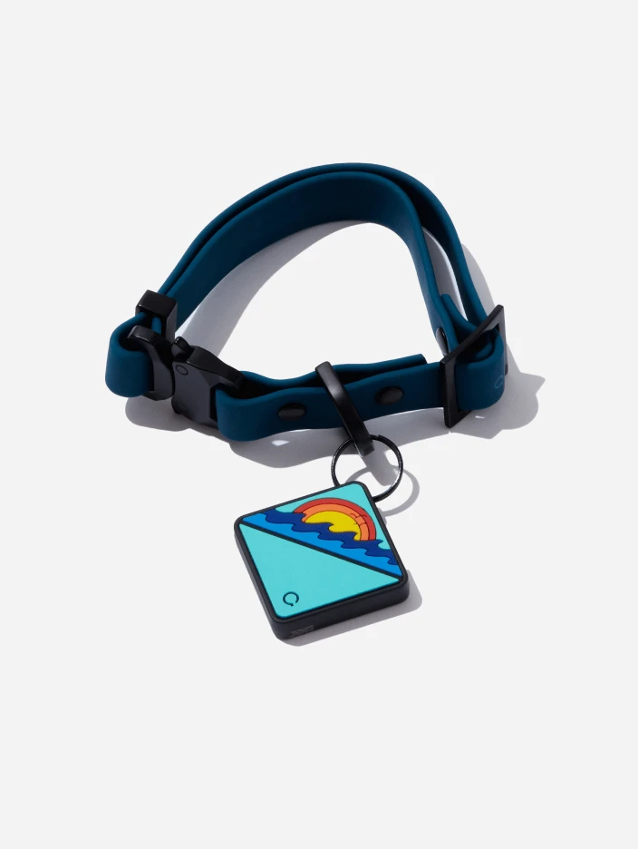Navy QALO Collar & Ocean Sunrise TraQ Dog ID Tag Set