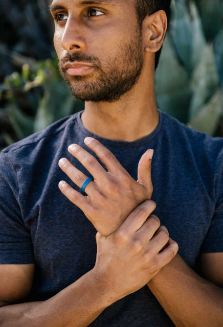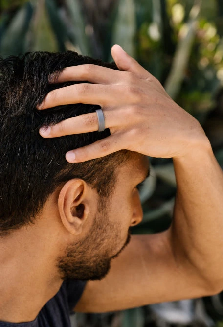 Show love for your person and your planet with the QALO Conscious compostable ring. Bioplastics made from plants allow for supreme comfort, strength, and flexibility with a gentler environmental impact. Available in essential Shark Skin, Stormy Blue, and Black.