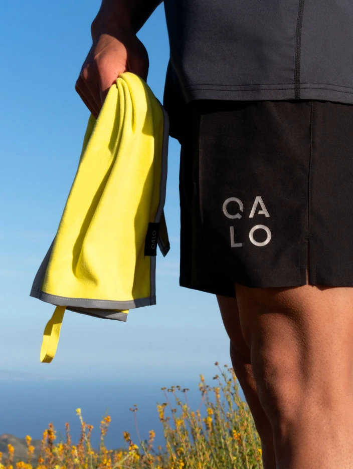 Stay cool and dry with our quick-dry towel. This lightweight towel is easily portable and affixed with a hang loop that doubles as a way to secure the towel when rolled up. Infused with anti-microbial tech, it’s quick-drying, absorbent, and odor resistant. These feature a reflective hit for a signature QALO look.