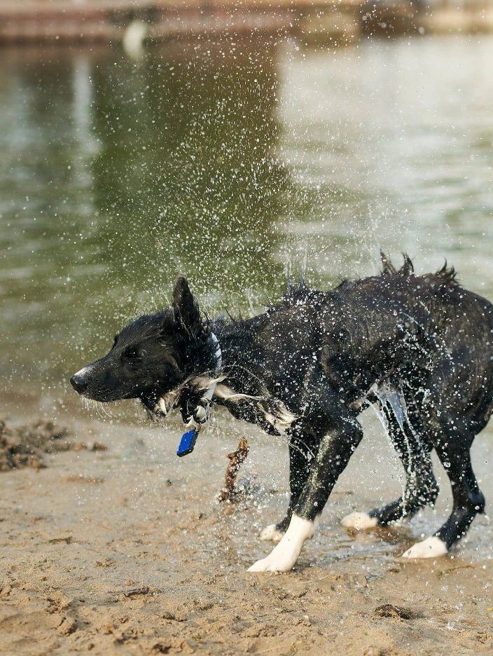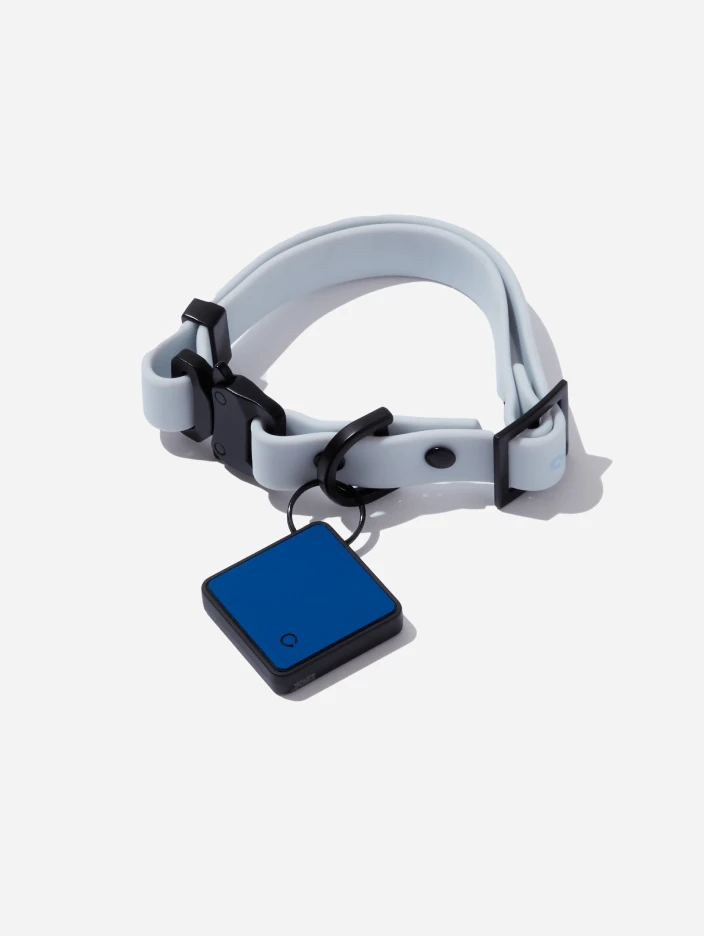 Sky Blue QALO Collar & Classic Navy TraQ Dog ID Set