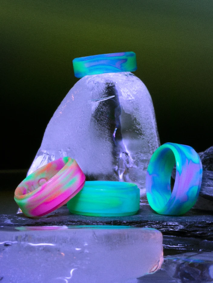 Inspired by the natural beauty of the Northern Lights, these rings capture the complexity and allure of the aurora borealis. Made with glow-in-the-dark material, so you can wow from day to night. Variances in color may occur, as each piece is unique.