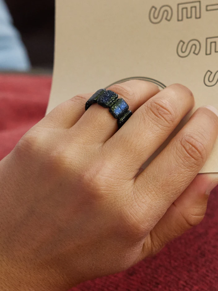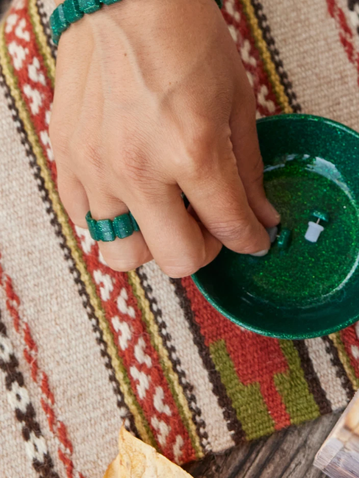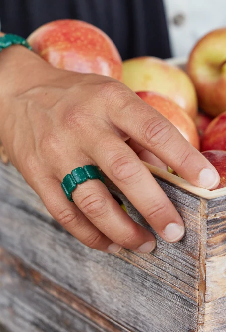 The Emme ring is available in a shimmering emerald or a subtly sparkling onyx, and pairs perfectly with our Emme earrings and Emme bracelet.