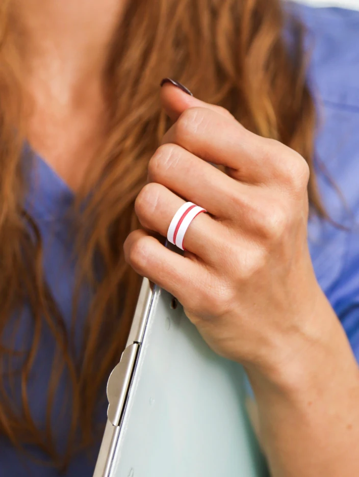 This red and white multi-layered ring is perfect for nurses and the people who love them. Crafted from premium quality silicone, this ring provides on-trend style, frictionless wear, and complete comfort.