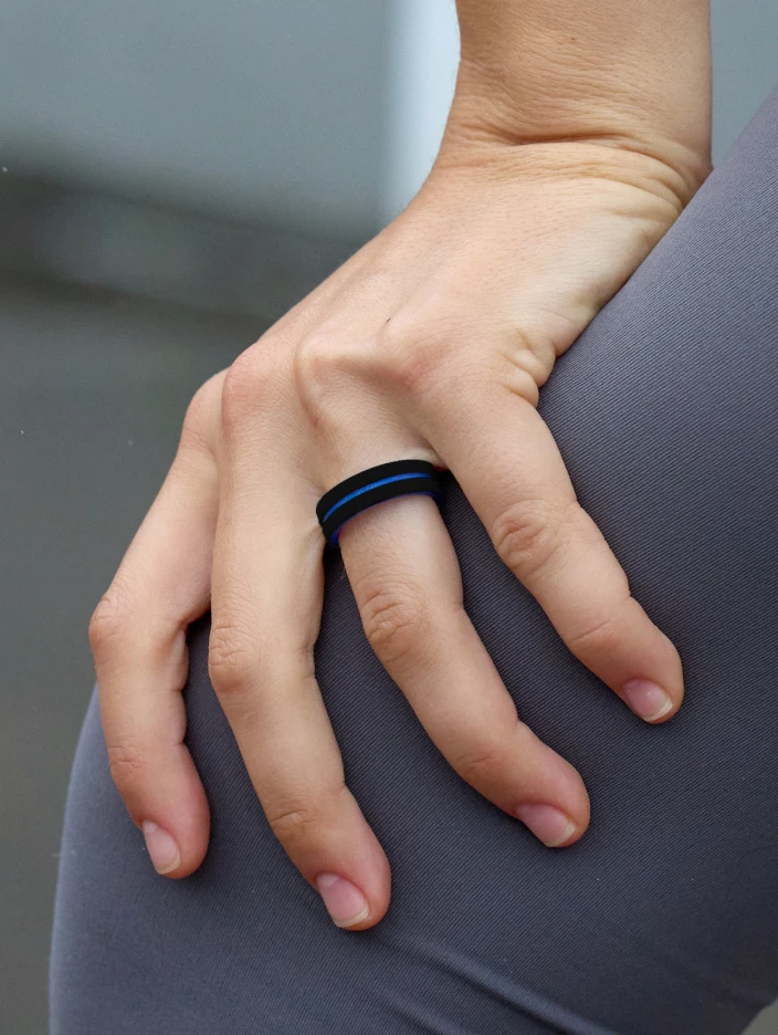 This black and navy multi-layered ring is perfect for police officers and the people who love them. Crafted from premium quality silicone, this ring provides on-trend style, frictionless wear, and complete comfort.
