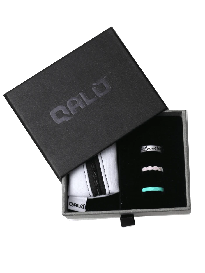 The QALO Women’s Greatest Hits Silicone Ring Gift Set features a collection of our most popular silhouettes that you can mix & match for endless possibilities. This exclusive gift set is complete with a QALO Pouch, and arrives in a ready to gift box.