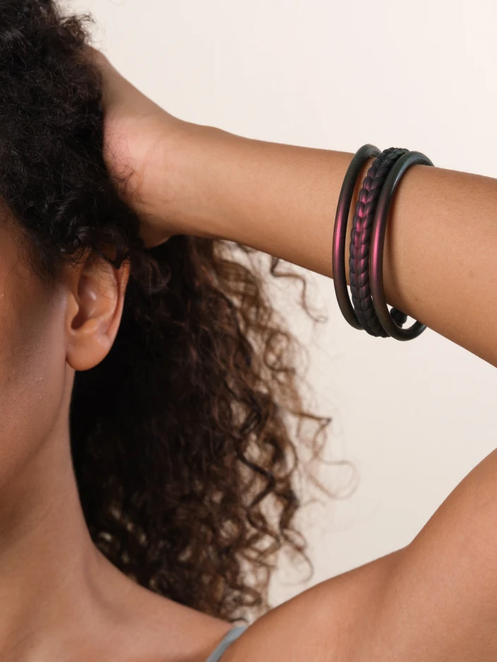 Part of our Holographic Functional Jewelry collection, the Essential Bangles are crafted from tough, yet ultra-comfortable silicone, and are made to be worn through all kinds of movement.