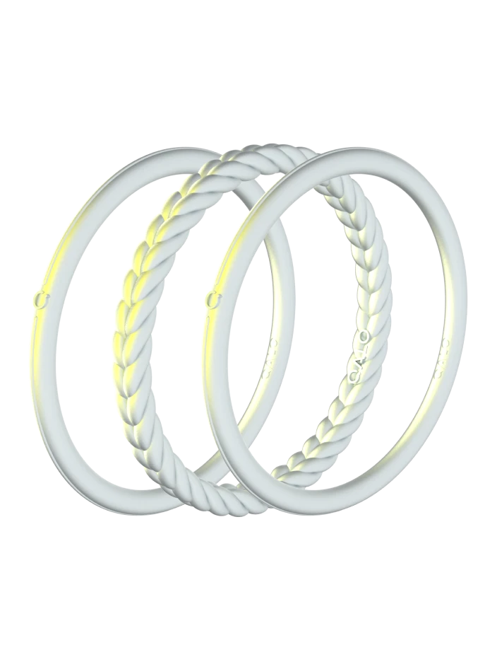 This set of three includes one braided silhouette, and two smooth silhouettes, all featuring an eye-catching reflective finish.