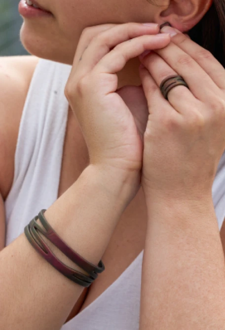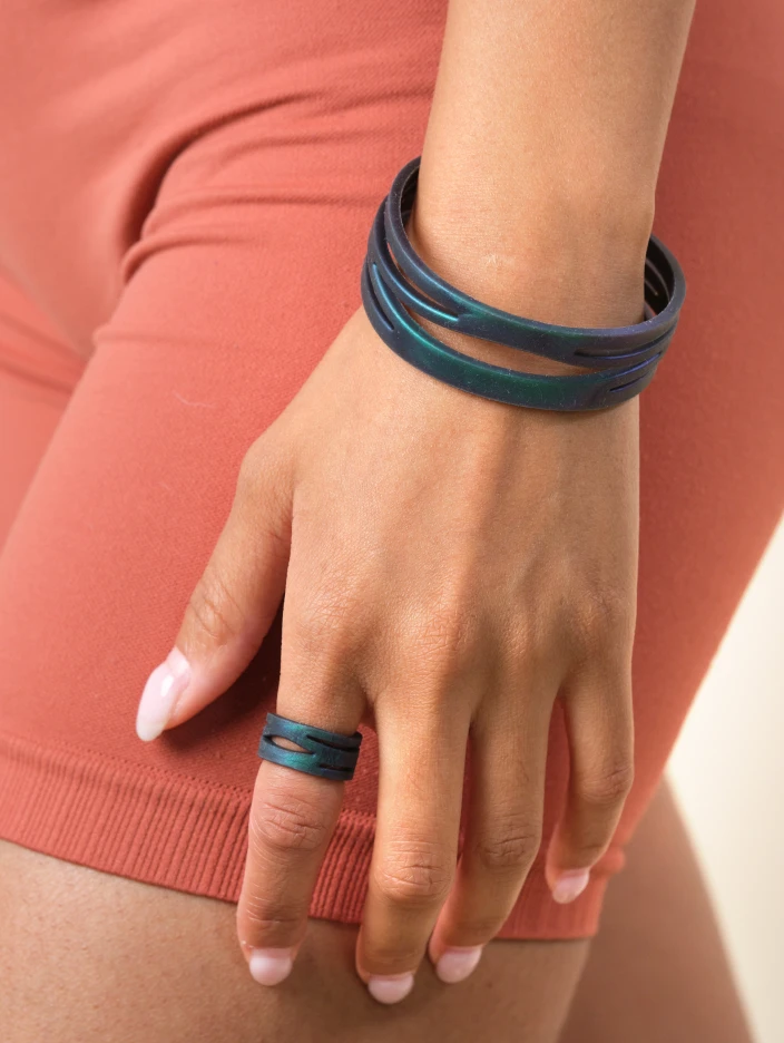 Part of our Holographic Functional Jewelry collection, the Zaha Bracelet is crafted from tough, yet ultra-comfortable silicone, and is made to be worn through all kinds of movement.