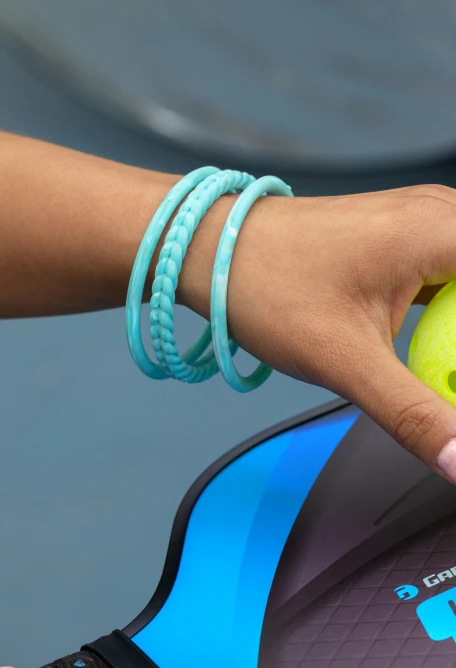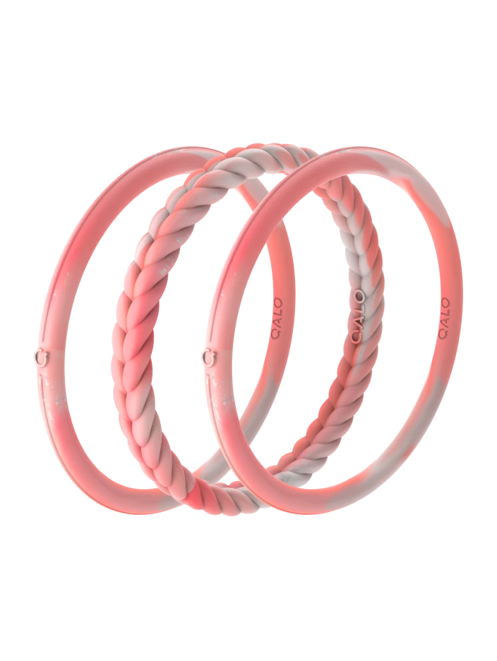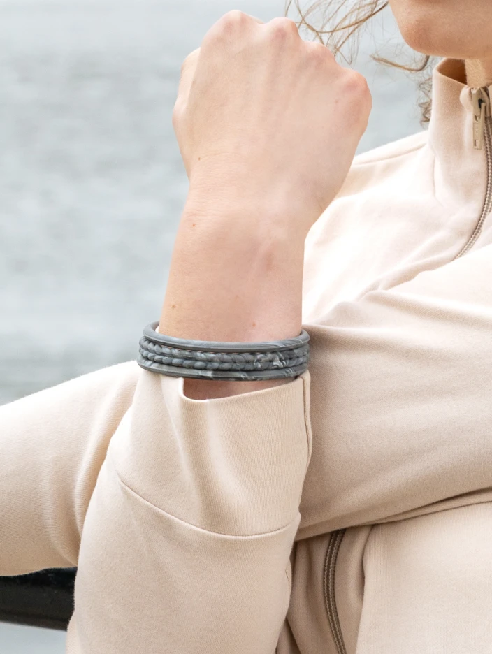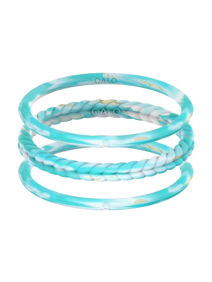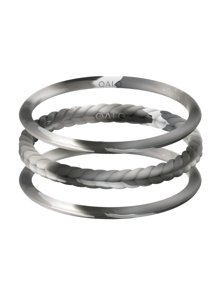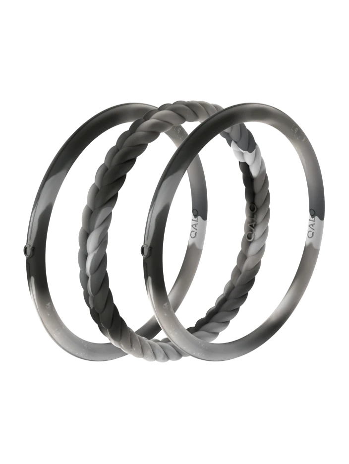 Part of our Natural Stone Functional Jewelry collection, the Essential Bangles are crafted from tough, yet ultra-comfortable silicone that captures the look of stone forged by the earth. This set of three includes one braided silhouette and two smooth silhouettes in 4 colors.