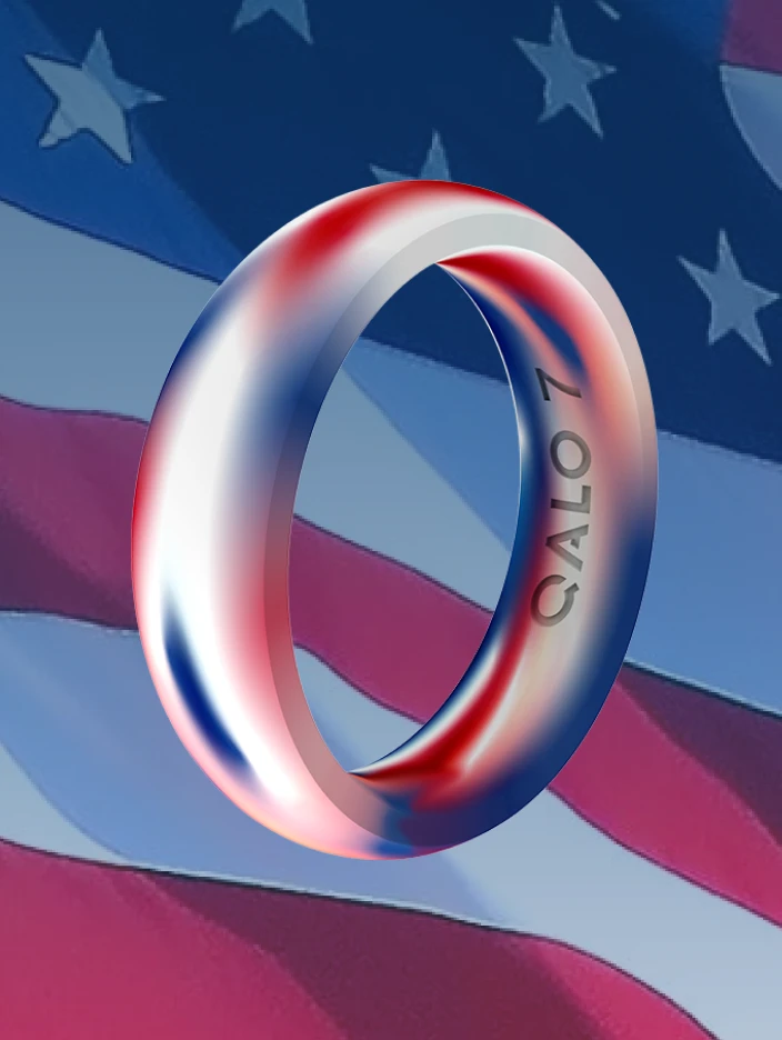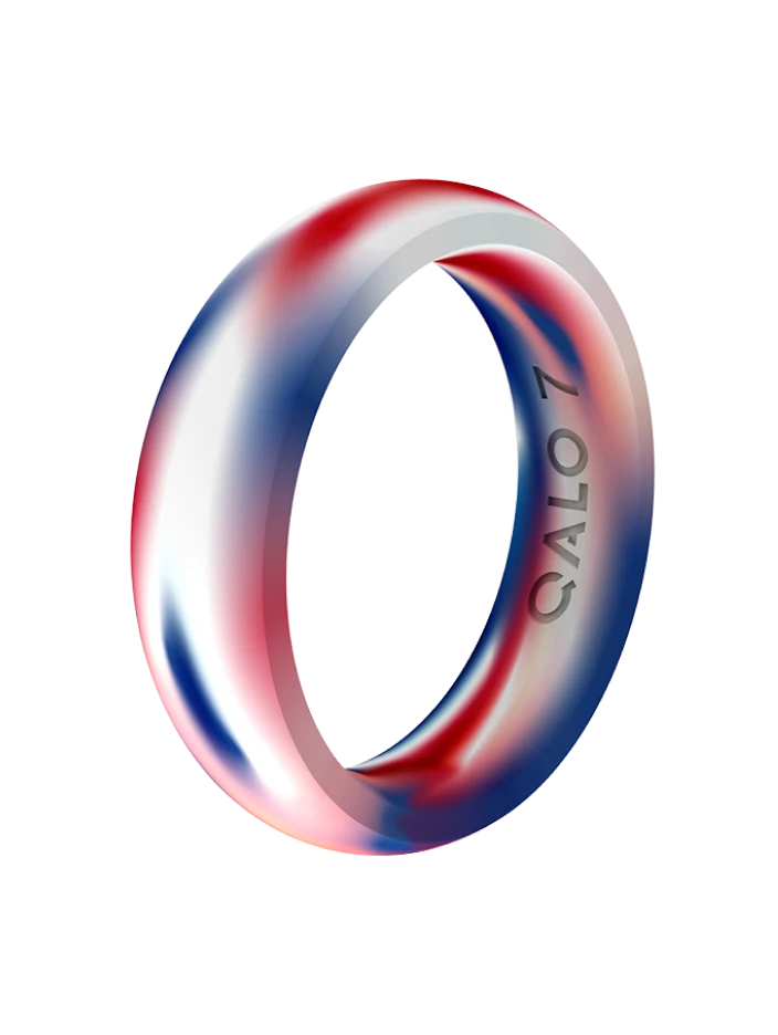 This red, white, and blue ring in a classic silhouette is crafted from premium quality silicone for timeless style, frictionless wear, and complete comfort.