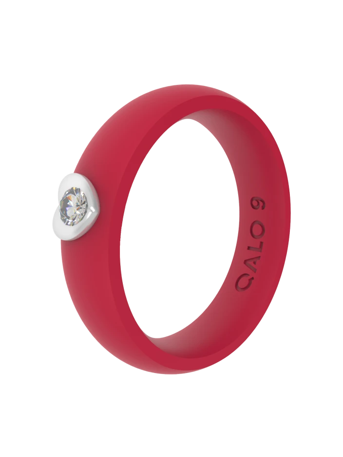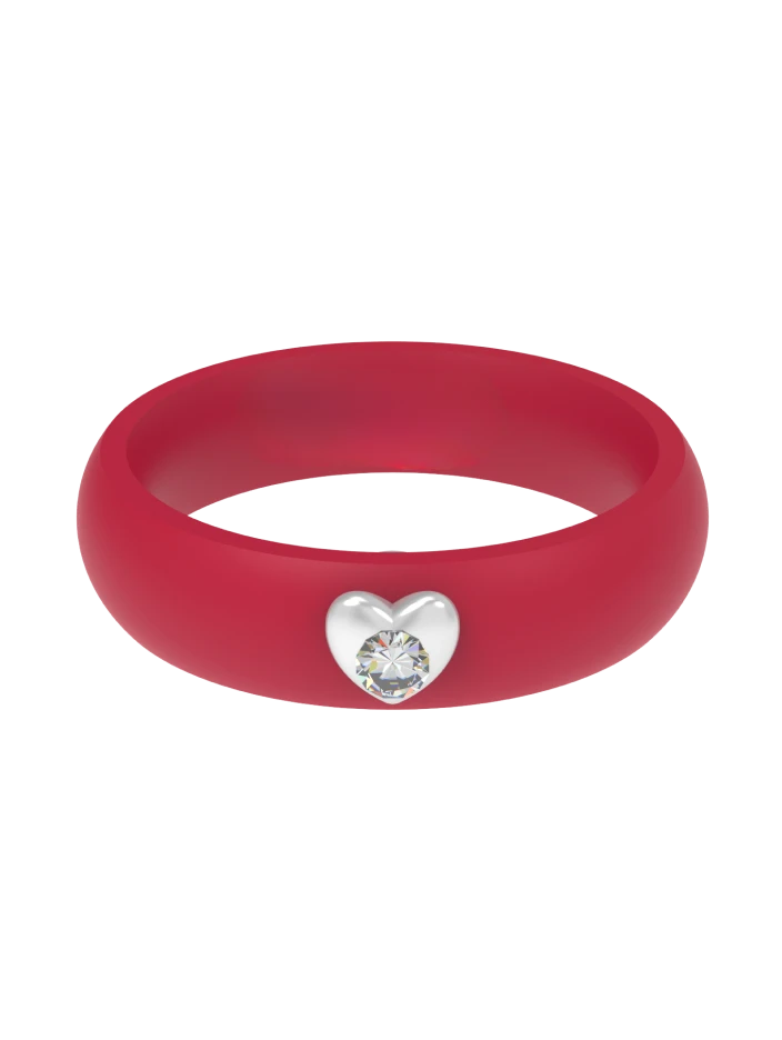 This gemstone ring features a luxe heart gemstone on an ultra-comfortable red silicone band for a romantic touch without stiffness.