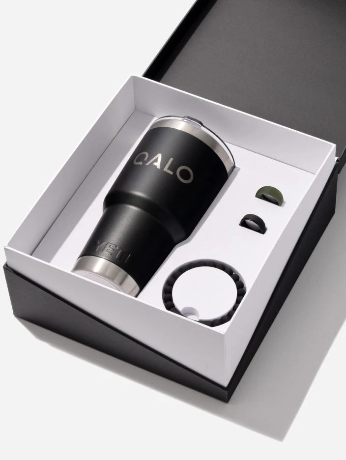 - 30 oz Yeti Rambler, engraved with the QALO logo.